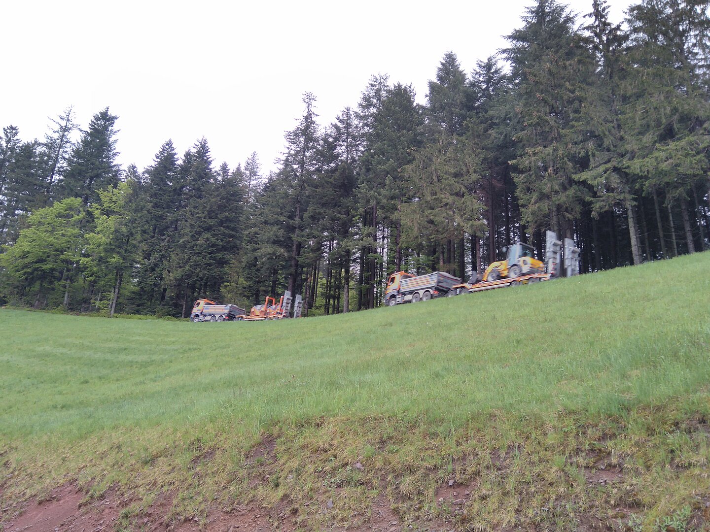 Unsere Tiefladergespanne transportieren täglich die erforderlichen Maschinen an die Baustellen. Zum Einsatz kommen LKW mit 510 PS starken Motoren der neusten Klasse.